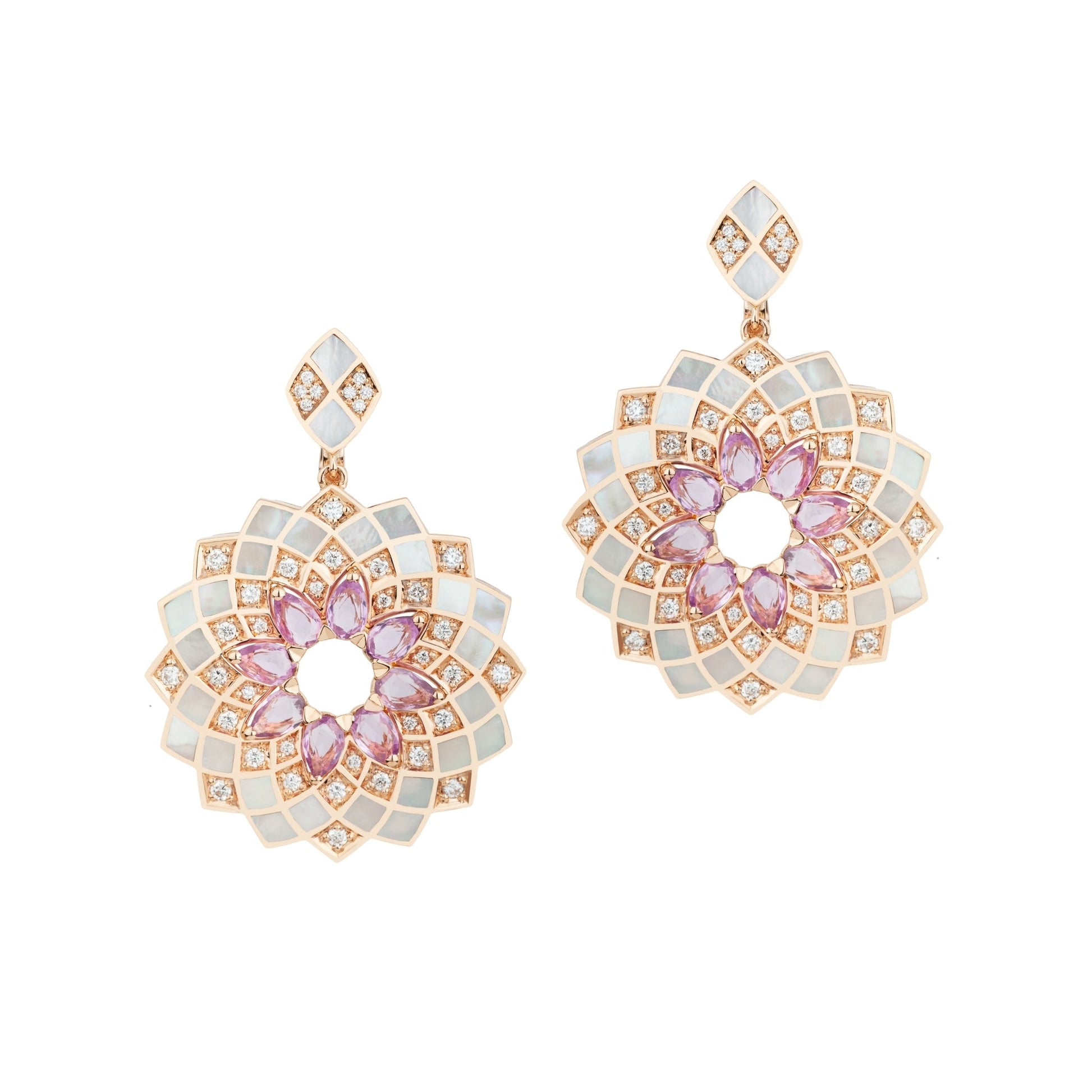 Classic Geometrica Pink Sapphire Earrings, L Model