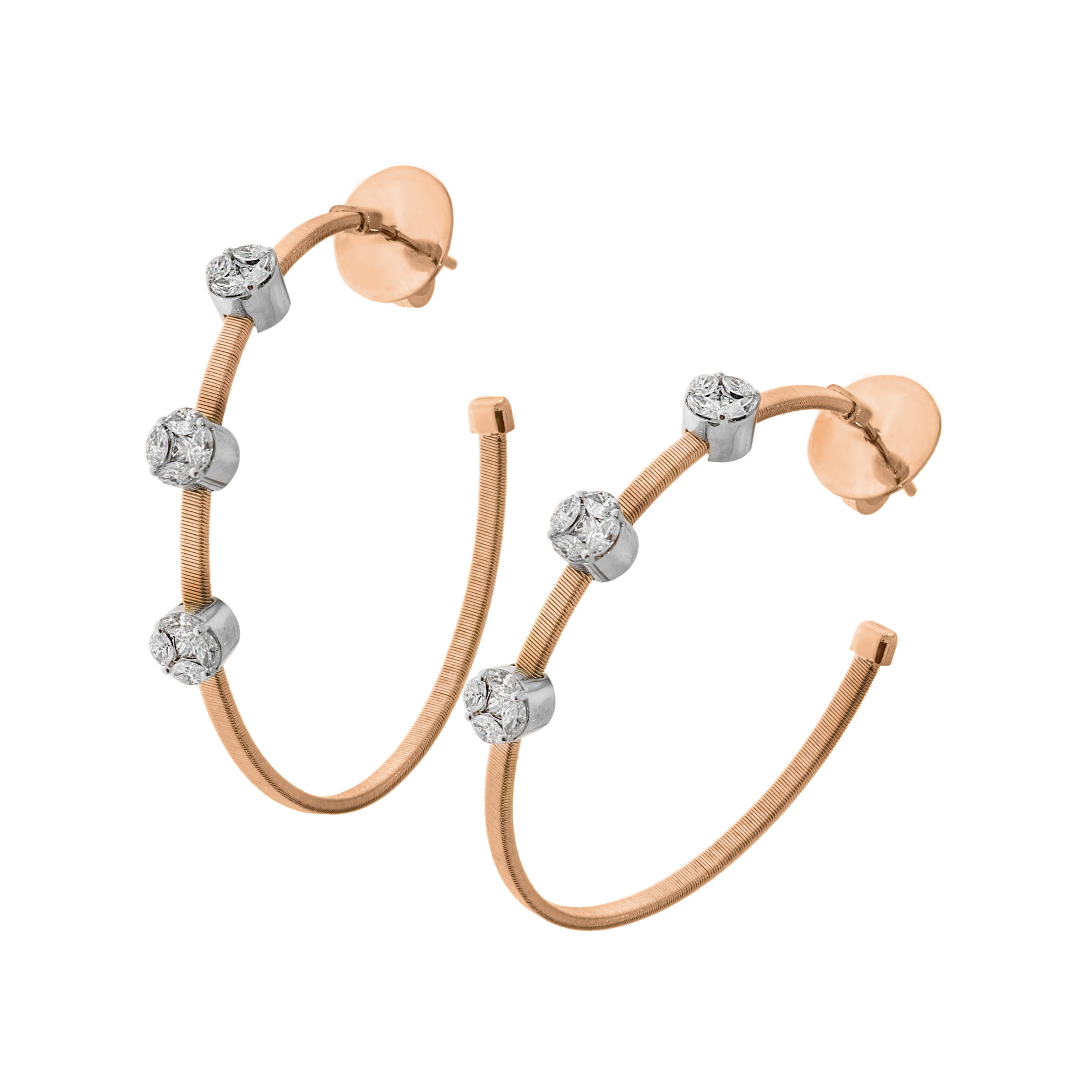 Polished 18K pink gold earrings featuring 0.84ct VS-FG diamonds for a refined sparkle.