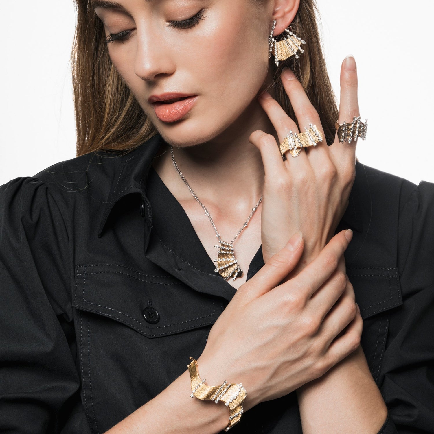 Wave by JJewels Milano is a luxurious, architectural collection in 18 kt gold and diamonds, blending structured Art Deco-inspired lines with dynamic movement — for those who appreciate jewelry as sculptural design.