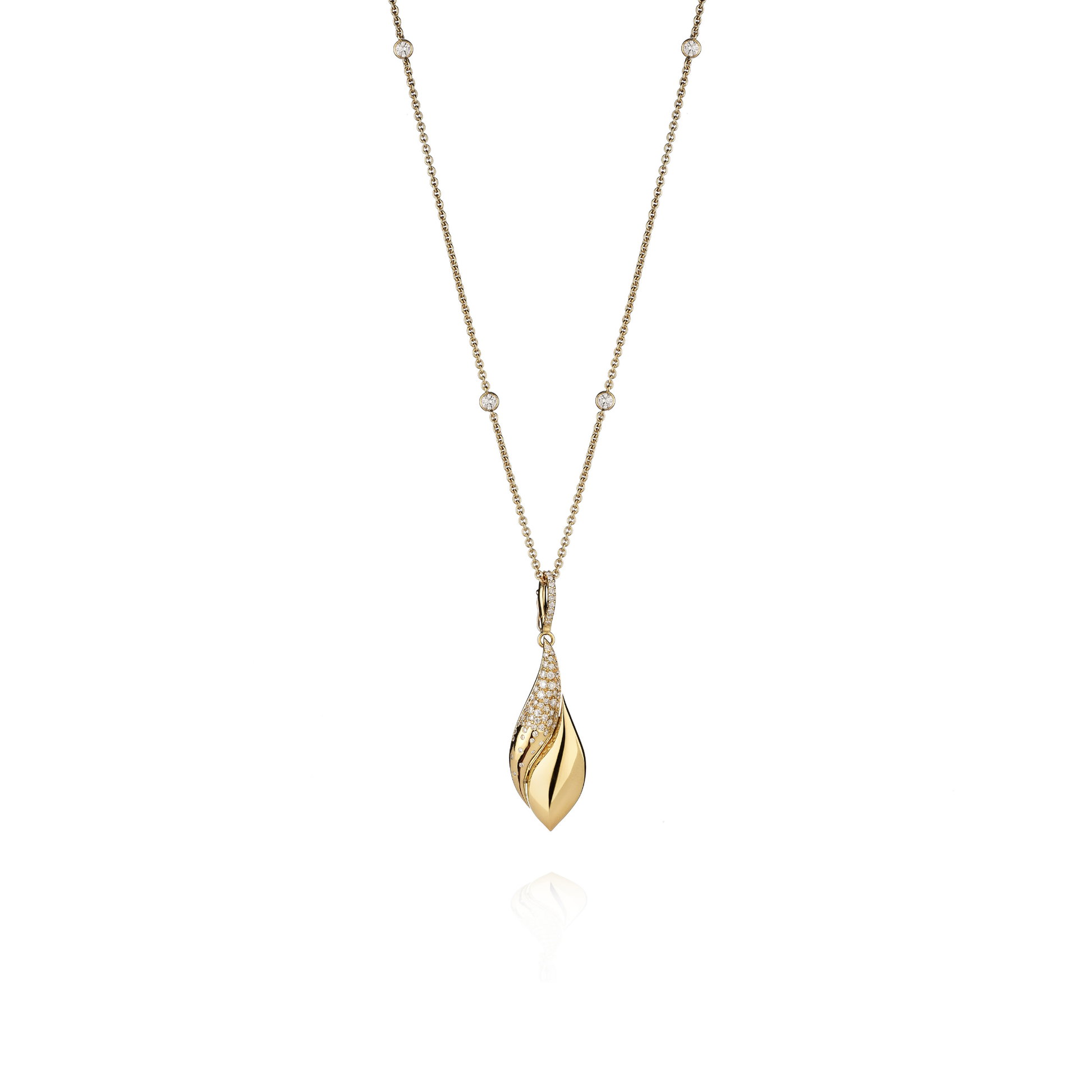 Minimalist 18K yellow gold Abbraccio necklace accented with 0.13 carats of VS-G diamonds.