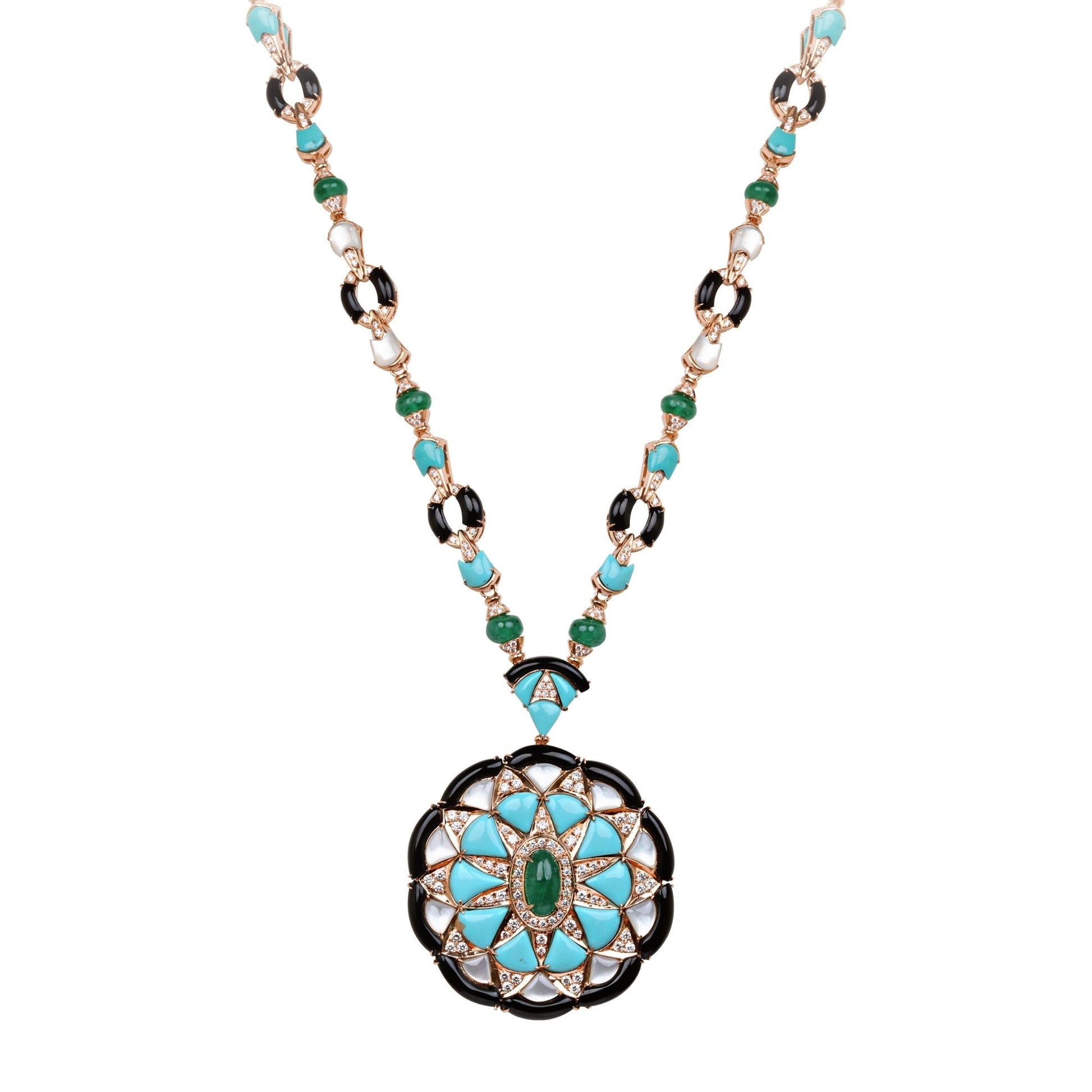 Necklace With Diamond, Emerald, Turquoise, Mother Of Pearl & Onyx